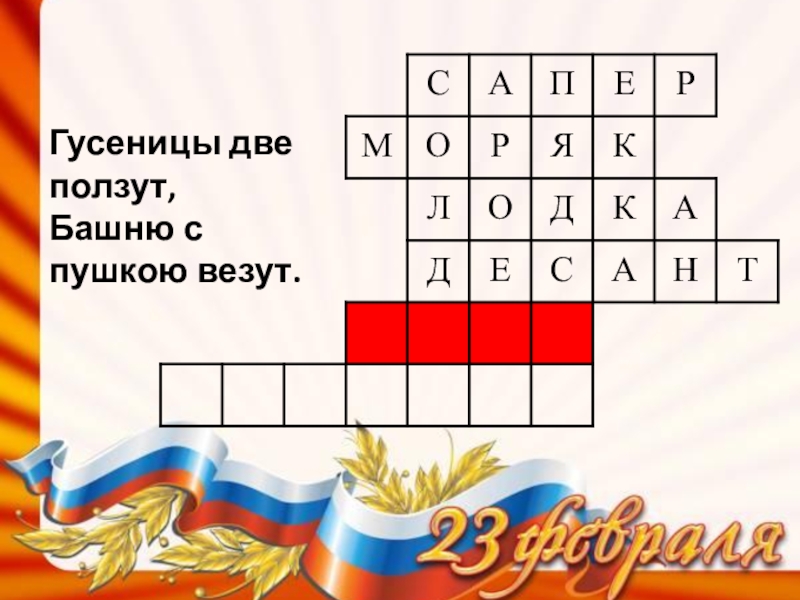 Слайд 14Гусеницы две ползут, Башню с пушкою везут.