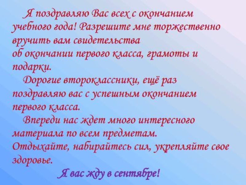 Презентация праздника на тему Прощание с 1 классом (1 класс) Детские презентации