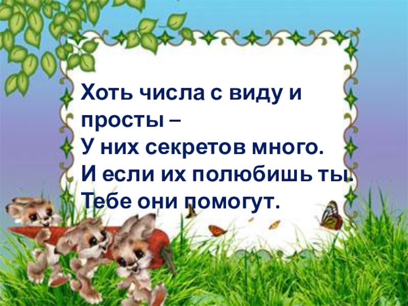 Хоть числа с виду и просты – У них секретов много.И если их полюбишь ты.Тебе они помогут.