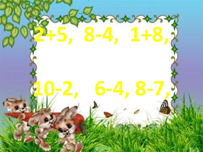 Слайд 262+5, 8-4, 1+8,