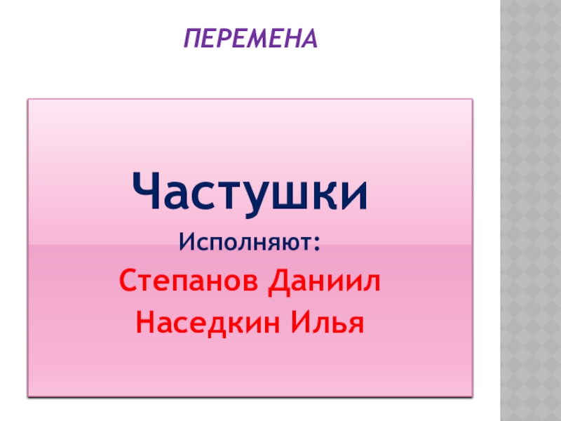Это сайт презентаций, где можно хранить и обмениваться своими презентациями, докладами, проектами, шаблонами в формате PowerPoint с другими пользователями. Мы помогаем школьникам, студентам, учителям, преподавателям хранить и обмениваться учебными материалами.