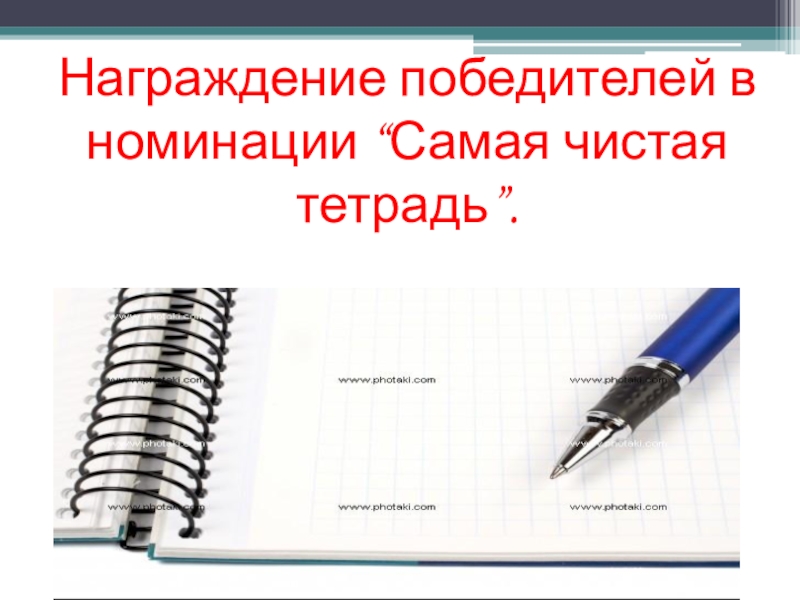 Слайд 30Награждение победителей в номинации “Самая чистая тетрадь”.