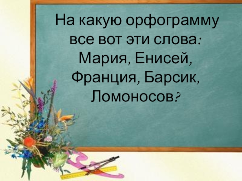 Слайд 16 На какую орфограмму все вот эти слова: Мария, Енисей, Франция,