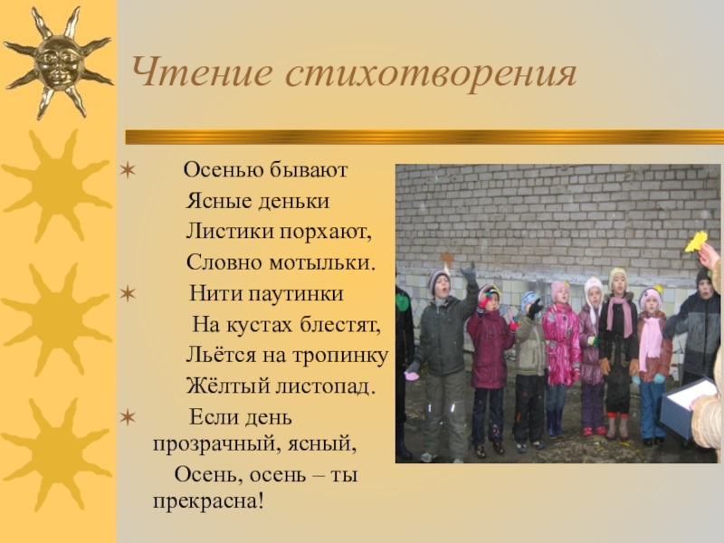 Чтение стихотворения   Осенью бывают      Ясные деньки
