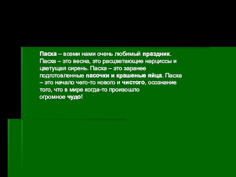 Слайд 31Пасха – всеми нами очень любимый праздник. Пасха – это весна, это расцветающие