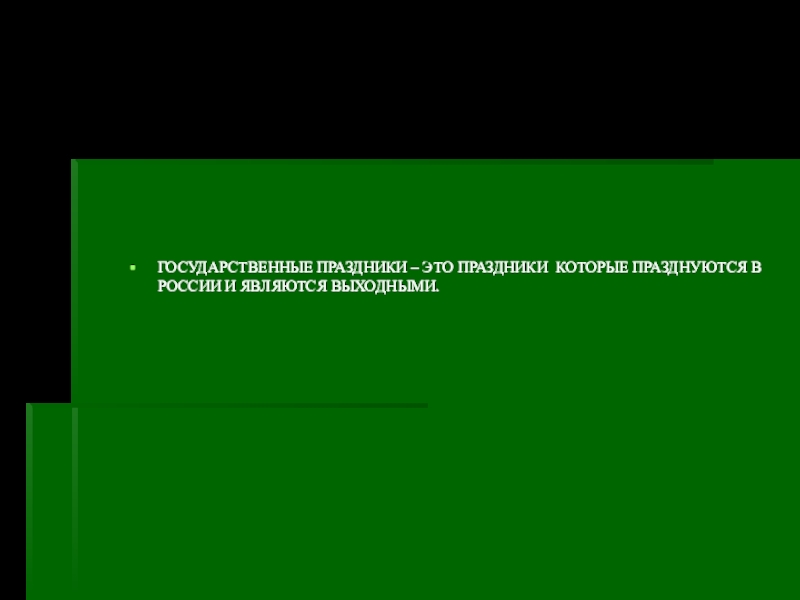 Слайд 2ГОСУДАРСТВЕННЫЕ ПРАЗДНИКИ – ЭТО ПРАЗДНИКИ КОТОРЫЕ ПРАЗДНУЮТСЯ В РОССИИ И ЯВЛЯЮТСЯ