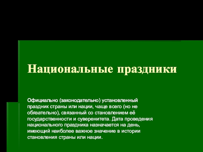 Официально (законодательно) установленный праздник страны или нации, чаще всего (но