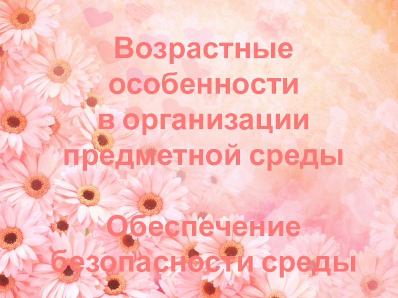 Возрастные особенностив организациипредметной средыОбеспечениебезопасности среды