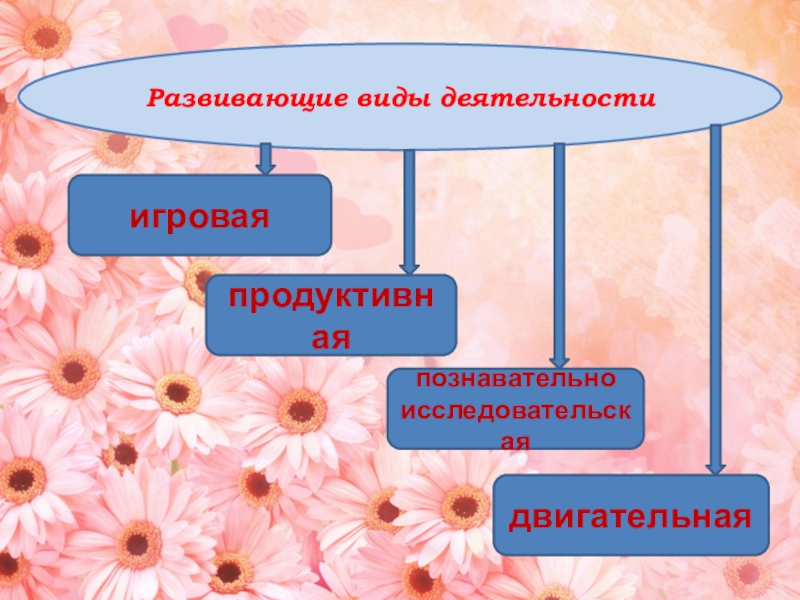 Развивающие виды деятельностиигроваяпродуктивнаяпознавательноисследовательскаядвигательная