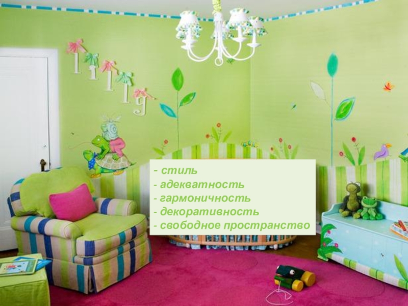 - стиль- адекватность- гармоничность- декоративность- свободное пространство