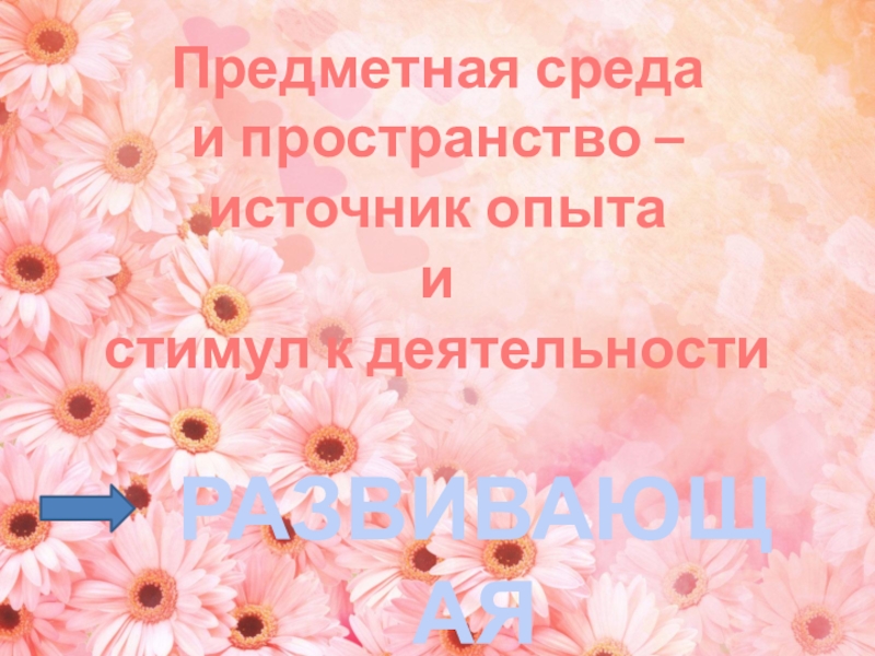 Предметная среда и пространство – источник опытаистимул к деятельности РАЗВИВАЮЩАЯ