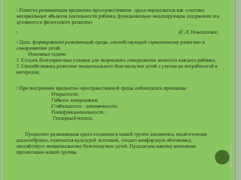 Цель: формирование развивающей среды, способствующей гармоничному развитию и саморазвитию детей.