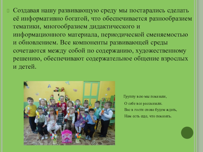 Слайд 30Создавая нашу развивающую среду мы постарались сделать её информативно богатой, что