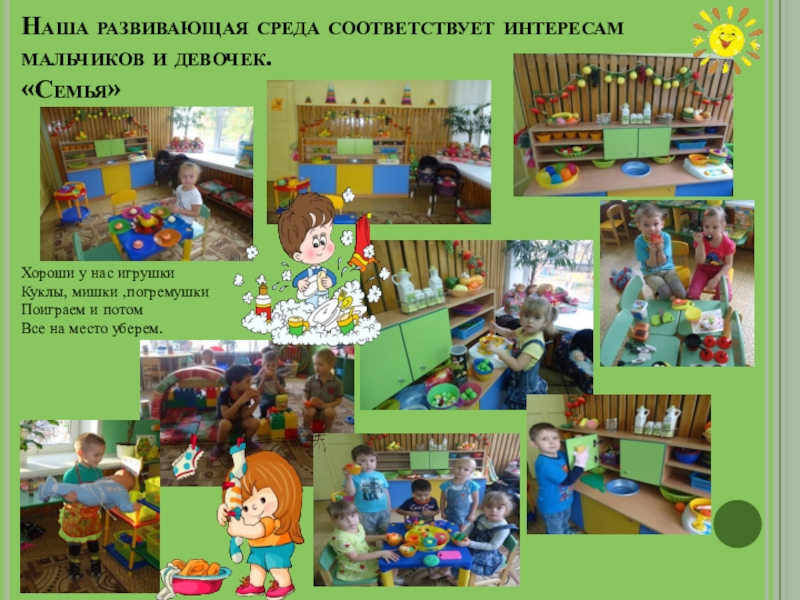 Слайд 25Наша развивающая среда соответствует интересам мальчиков и девочек.