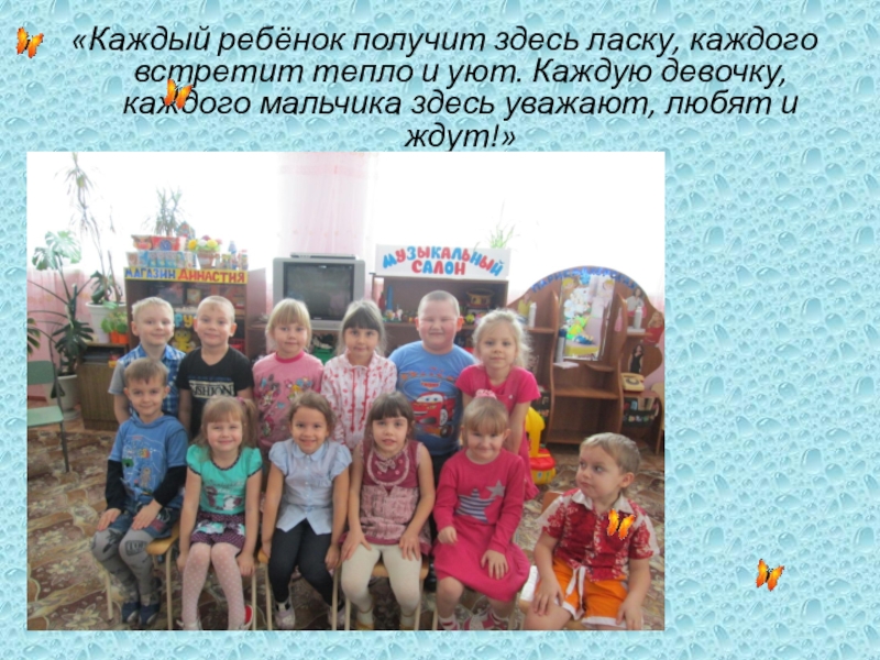 Слайд 24«Каждый ребёнок получит здесь ласку, каждого встретит тепло и уют. Каждую