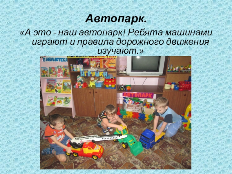 «А это - наш автопарк! Ребята машинами играют и правила дорожного