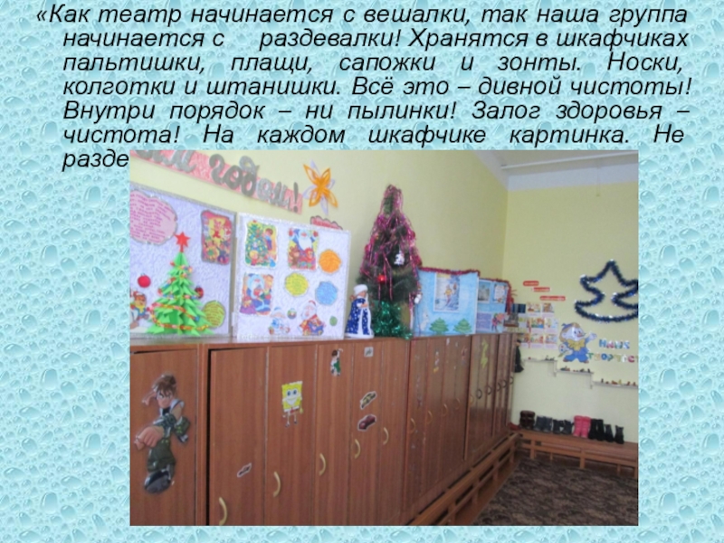 Слайд 5«Как театр начинается с вешалки, так наша группа начинается с