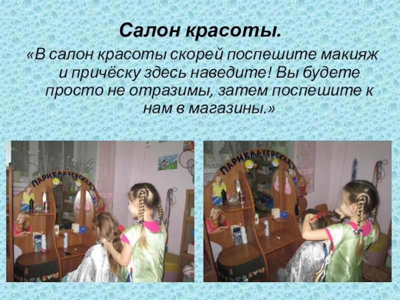 «В салон красоты скорей поспешите макияж и причёску здесь наведите!