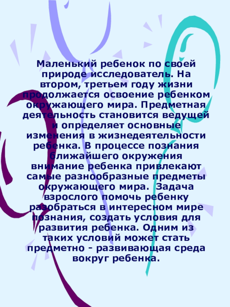 Слайд 2Маленький ребенок по своей природе исследователь. На втором, третьем году жизни