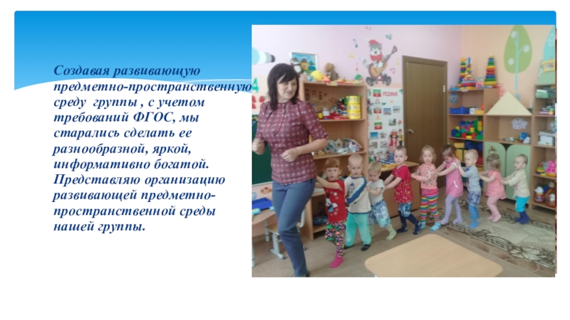 Слайд 4Создавая развивающую предметно-пространственную среду группы , с учетом требований ФГОС, мы