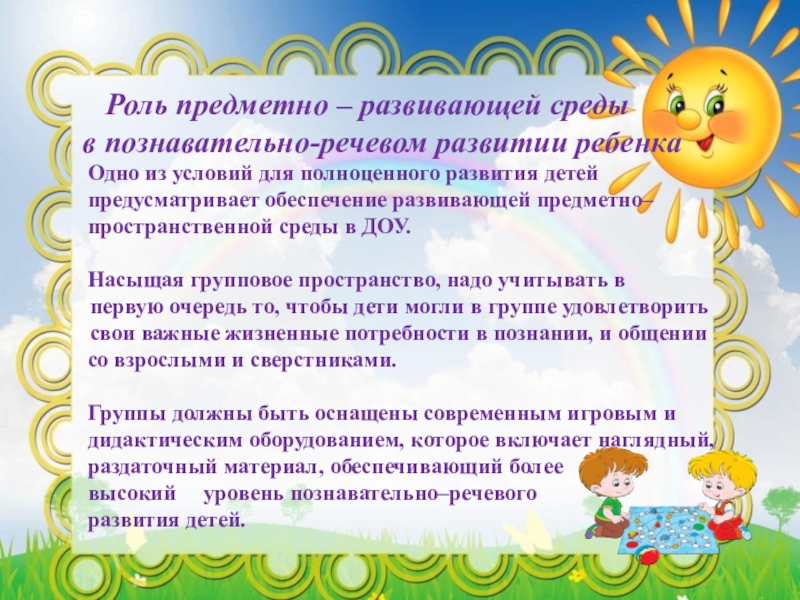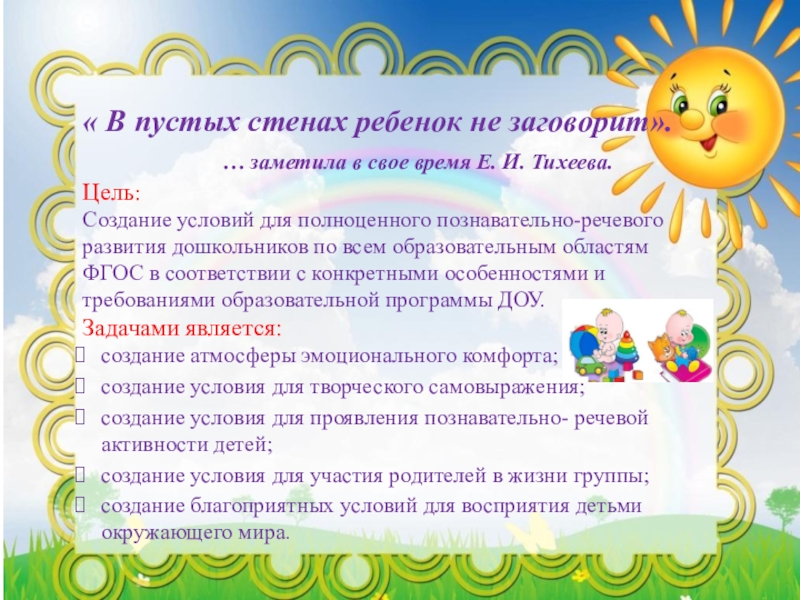 создание благоприятных условий для восприятия детьми окружающего мира.