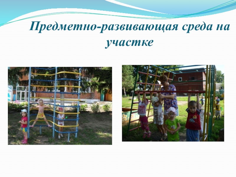 Слайд 35Предметно-развивающая среда на участке