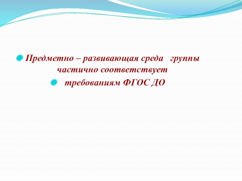 Слайд 45Предметно – развивающая среда группы частично соответствует