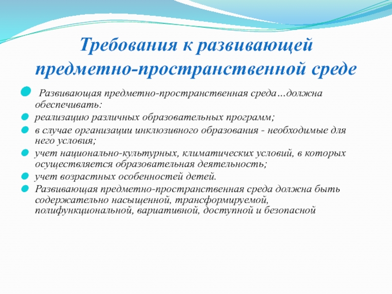 Слайд 4Требования к развивающей предметно-пространственной среде