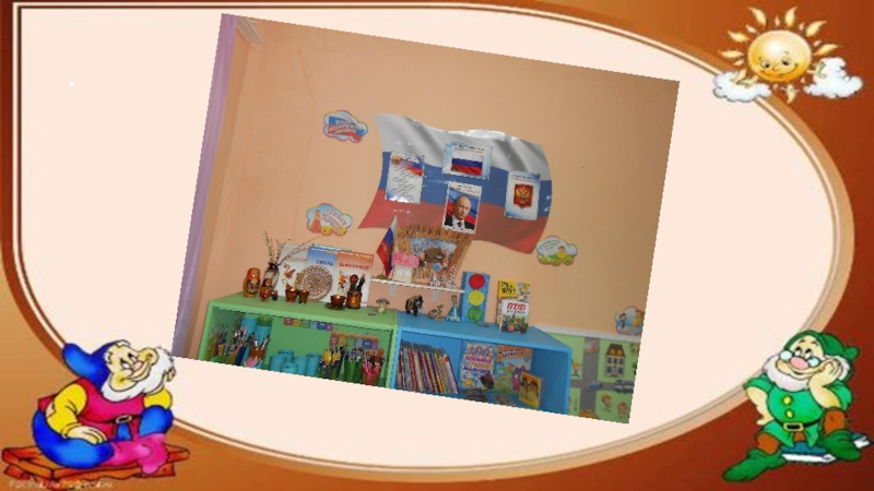 Любовь к близким людям, к детскому саду, к родному городу и родной стране играют огромную роль в становлении личности ребенка. Главными атрибутами нашего патриотического уголка являются государственные символы России и портреты президента России