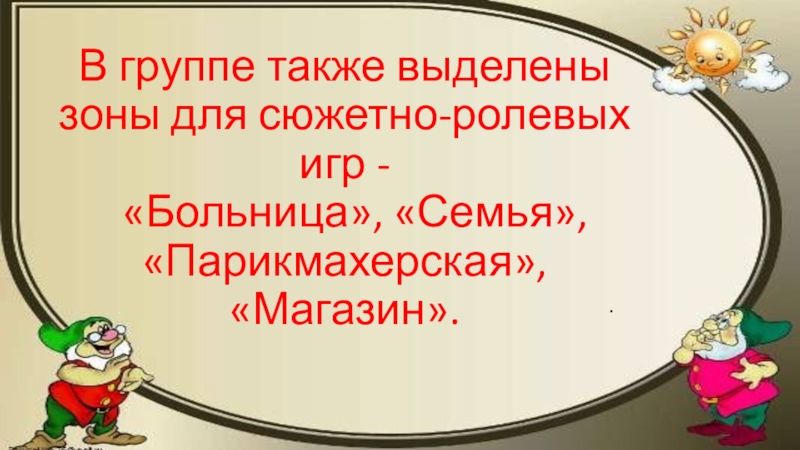 Слайд 7В группе также выделены зоны для сюжетно-ролевых игр - «Больница», «Семья», «Парикмахерская»,