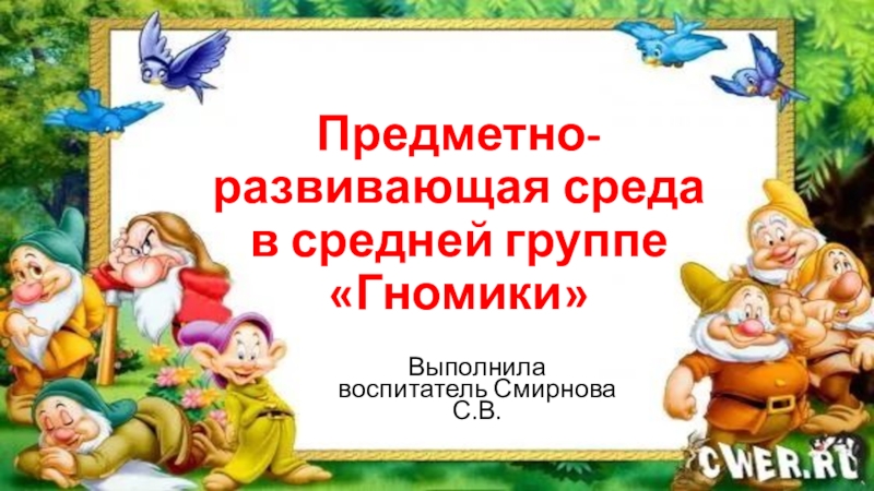 Предметно-развивающая среда в средней группе «Гномики» .Выполнила воспитатель Смирнова С.В.