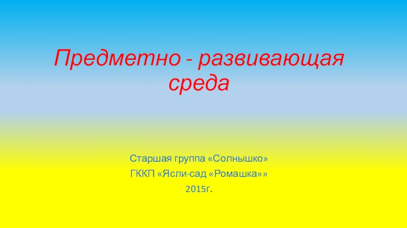 Предметно - развивающая средаСтаршая группа «Солнышко»ГККП «Ясли-сад «Ромашка»»2015г.