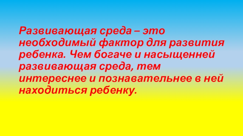 Слайд 2Развивающая среда – это необходимый фактор для развития ребенка. Чем богаче