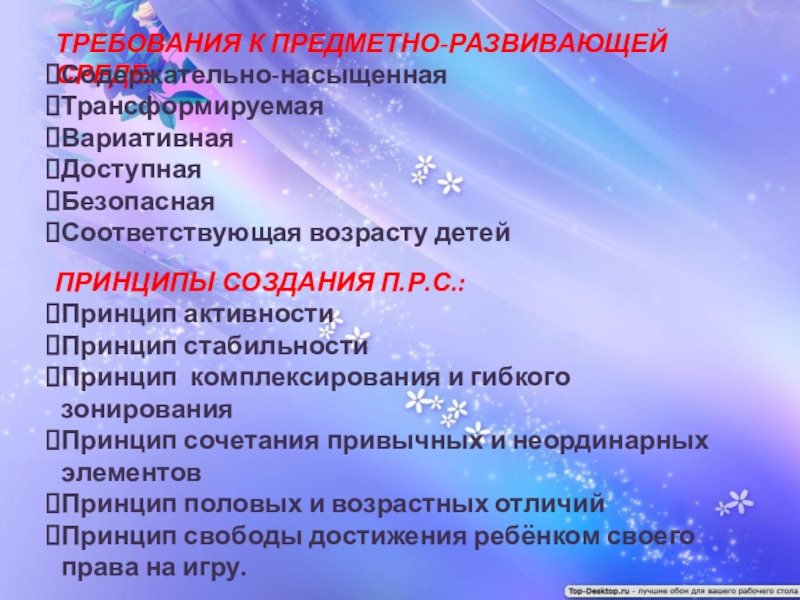 Слайд 3ТРЕБОВАНИЯ К ПРЕДМЕТНО-РАЗВИВАЮЩЕЙ СРЕДЕ: