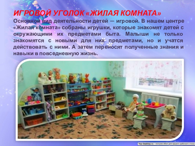 Слайд 24ИГРОВОЙ УГОЛОК «ЖИЛАЯ КОМНАТА»