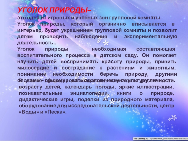Слайд 13УГОЛОК ПРИРОДЫ–