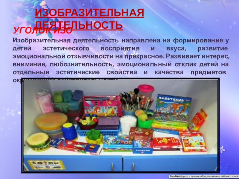 вкуса, развитие эмоциональной отзывчивости на прекрасное. Развивает интерес, внимание, любознательность, эмоциональный отклик детей на отдельные эстетические свойства и качества предметов окружающей действительности