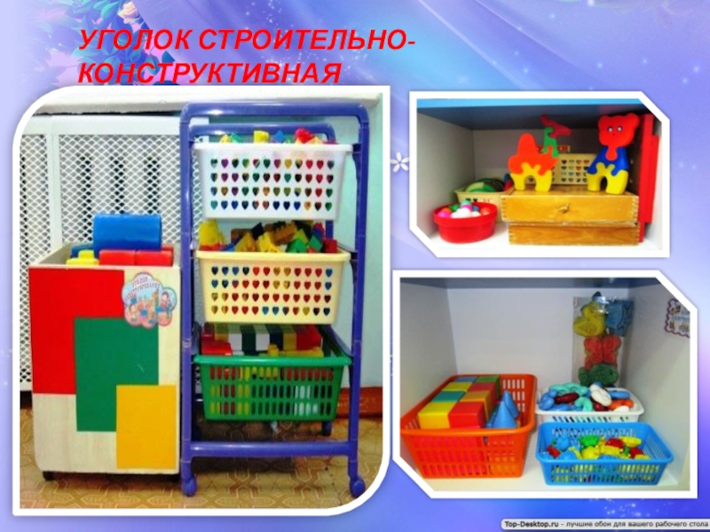 Содержимое строительного центра позволяет организовать конструктивную деятельность с группой детей,