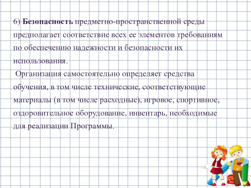 Слайд 96) Безопасность предметно-пространственной среды предполагает соответствие всех ее элементов требованиям по