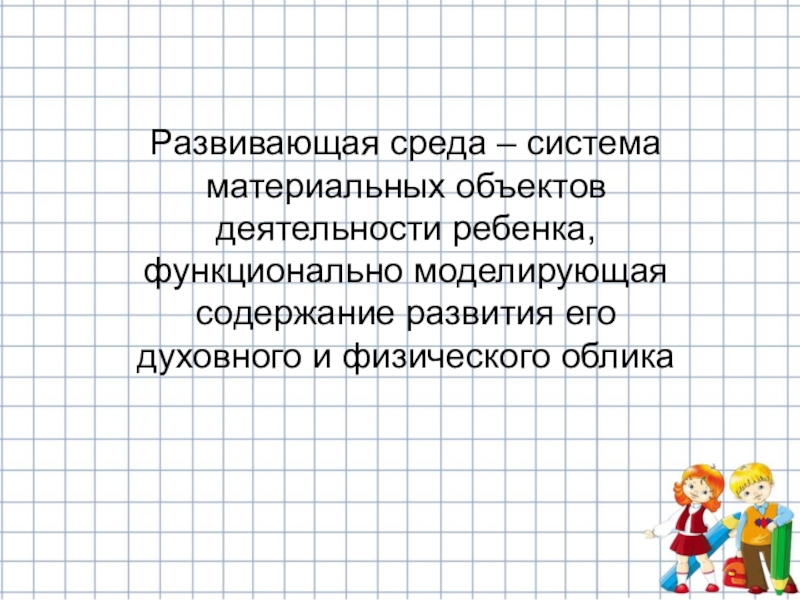 Слайд 2Развивающая среда – система материальных объектов деятельности ребенка, функционально моделирующая содержание
