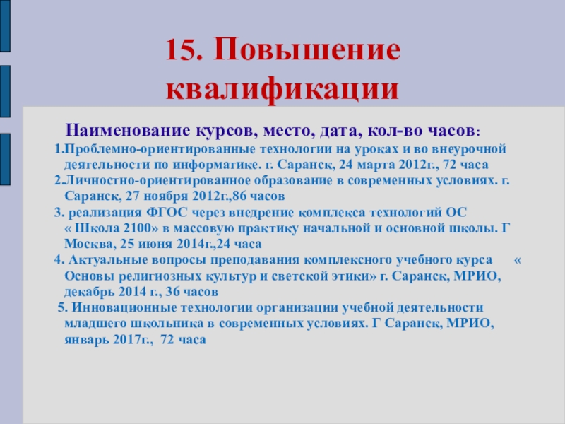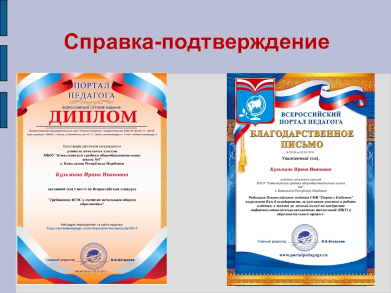 Наличие квалификационной категории: первая