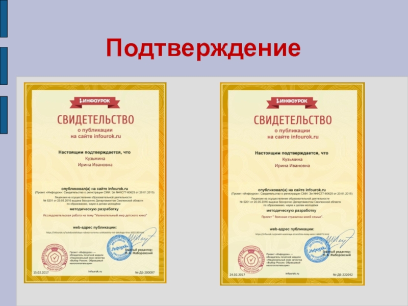 Дата последней аттестации: 22.05.2013 года