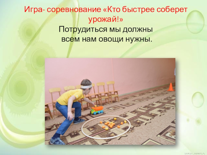 Слайд 22Игра- соревнование «Кто быстрее соберет урожай!»