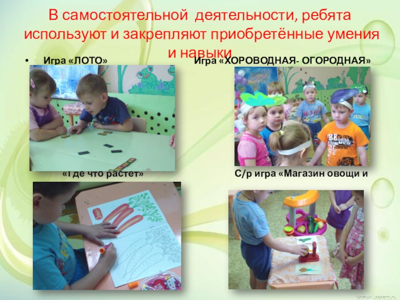 Слайд 12В самостоятельной деятельности, ребята используют и закрепляют приобретённые умения и навыки