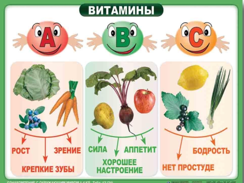 и фруктах; понятие о витаминах, раскрыть их значение для человека.