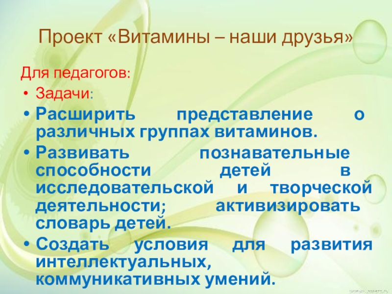 Дать детям знания о витаминах, об их пользе для здоровья человека, о содержании тех или иных витаминов в овощах, фруктах и ягодах.