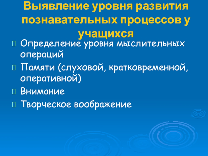 Слайд 13Выявление уровня развития познавательных процессов у учащихся