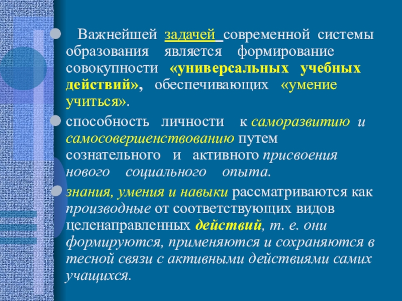 Слайд 6 Важнейшей задачей современной системы образования является формирование
