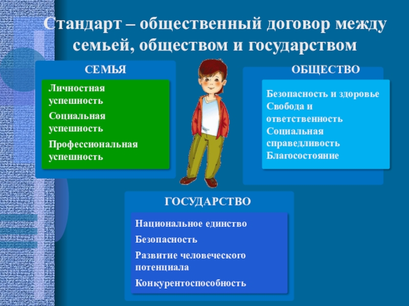 Слайд 4Стандарт – общественный договор между семьей, обществом и государством