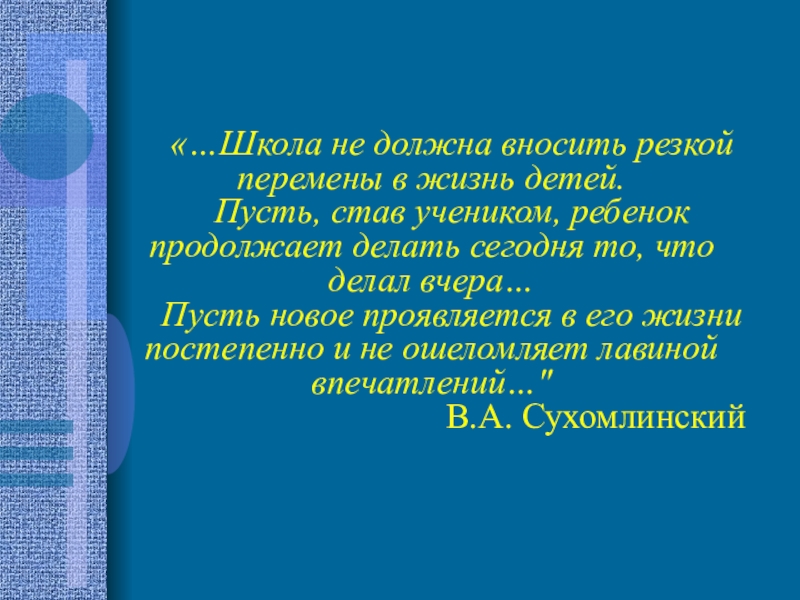 Слайд 32«…Школа не должна вносить резкой перемены в жизнь детей.